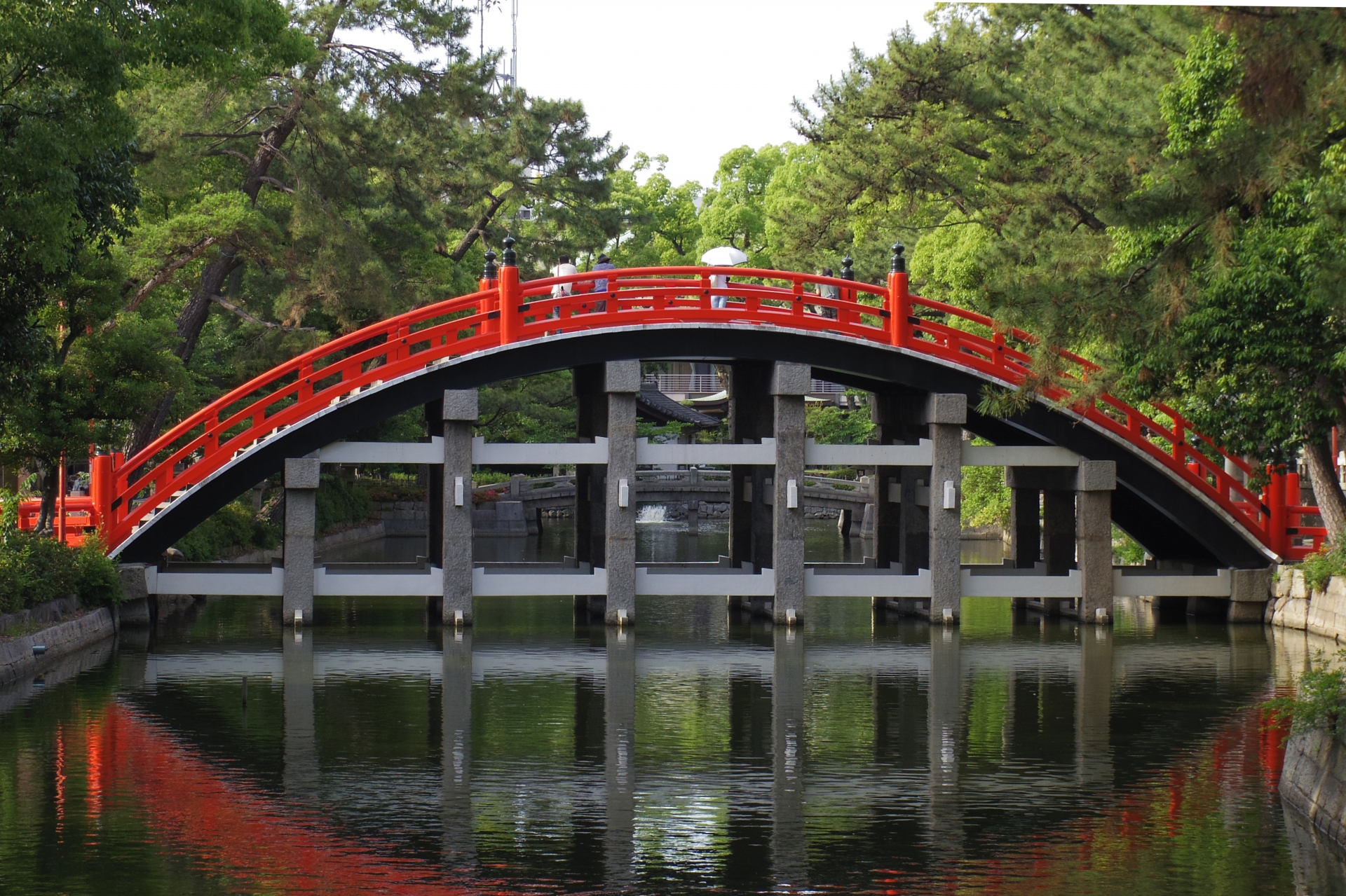 大阪を代表する神社「住吉大社」は国宝に指定されている本殿など見どころがたくさん。春には境内が桜で彩られ、住吉さんの象徴とされる朱塗りの反橋(太鼓橋)とのコントラストが美しい!