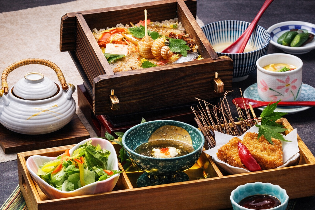 | 1 | 徳島駅前(7:00)== 松茂 == 鳴門 == 郷土料理 「 海王 」にて中海七珍せいろめし膳の昼食(約1時間)==◎ 足立美術館(約2時間30分)== 鳴門 == 松茂 == 徳島駅前(19:50) |